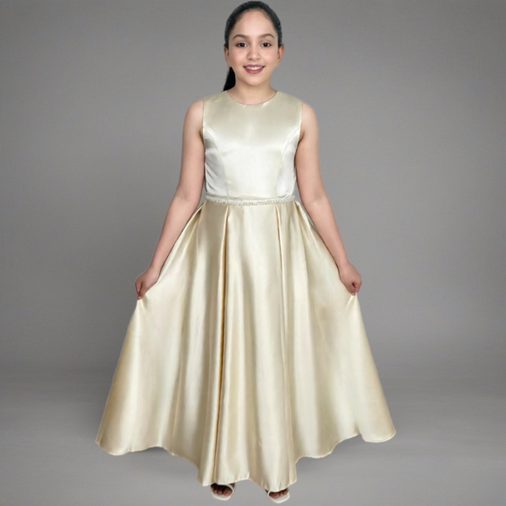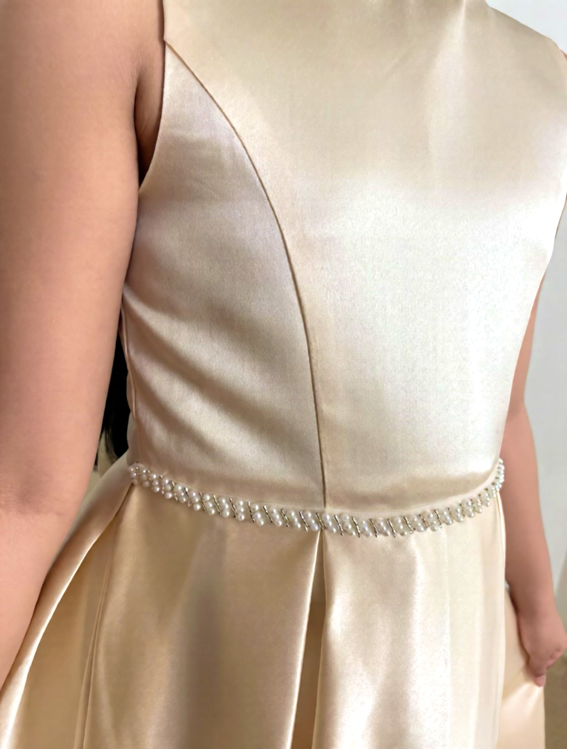 Elevate her special moments with a gown that embodies sophistication, grace, and timeless luxury. Crafted from premium satin, this exquisite bedge dress flows beautifully with every step, creating a refined silhouette worthy of any formal occasion.