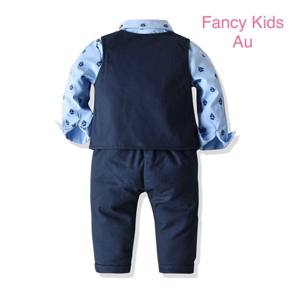 Check out these latest fancy kids boys outfits come with fully lined waistcoat, shirt, trouser and bow.
