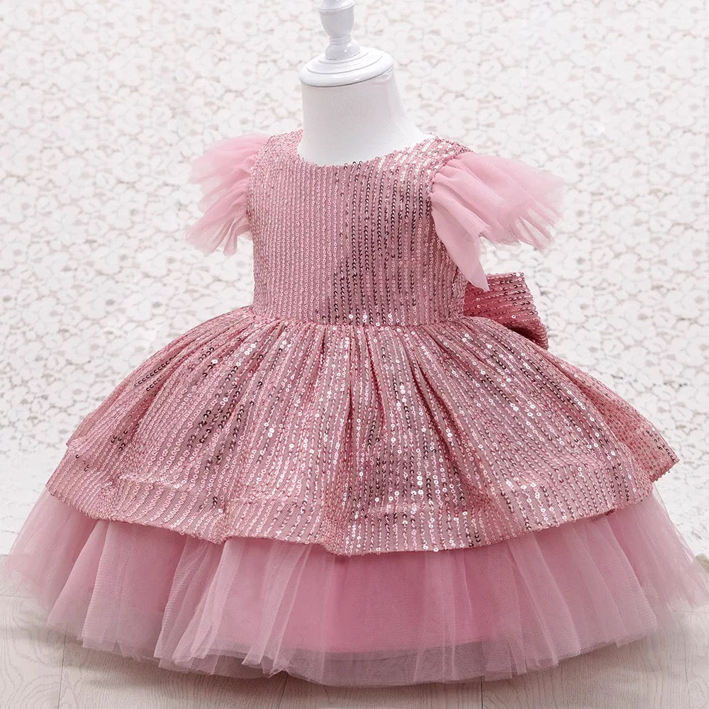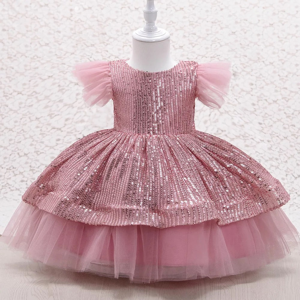 Elegant and luxurious party dress beautifully crafted with sequin fabric and soft tulle.