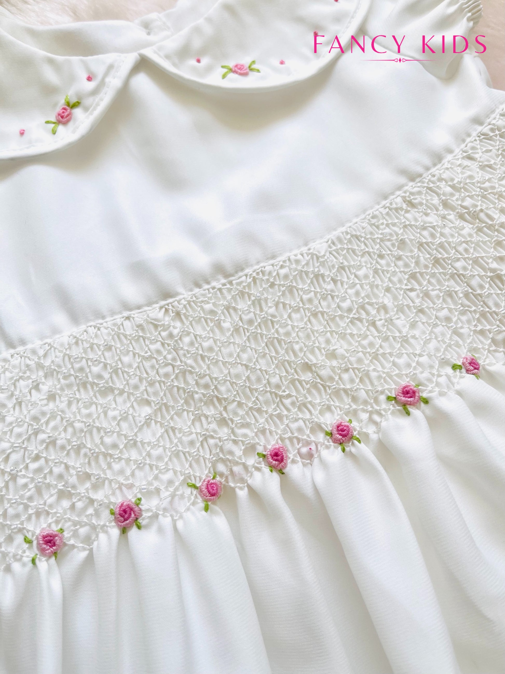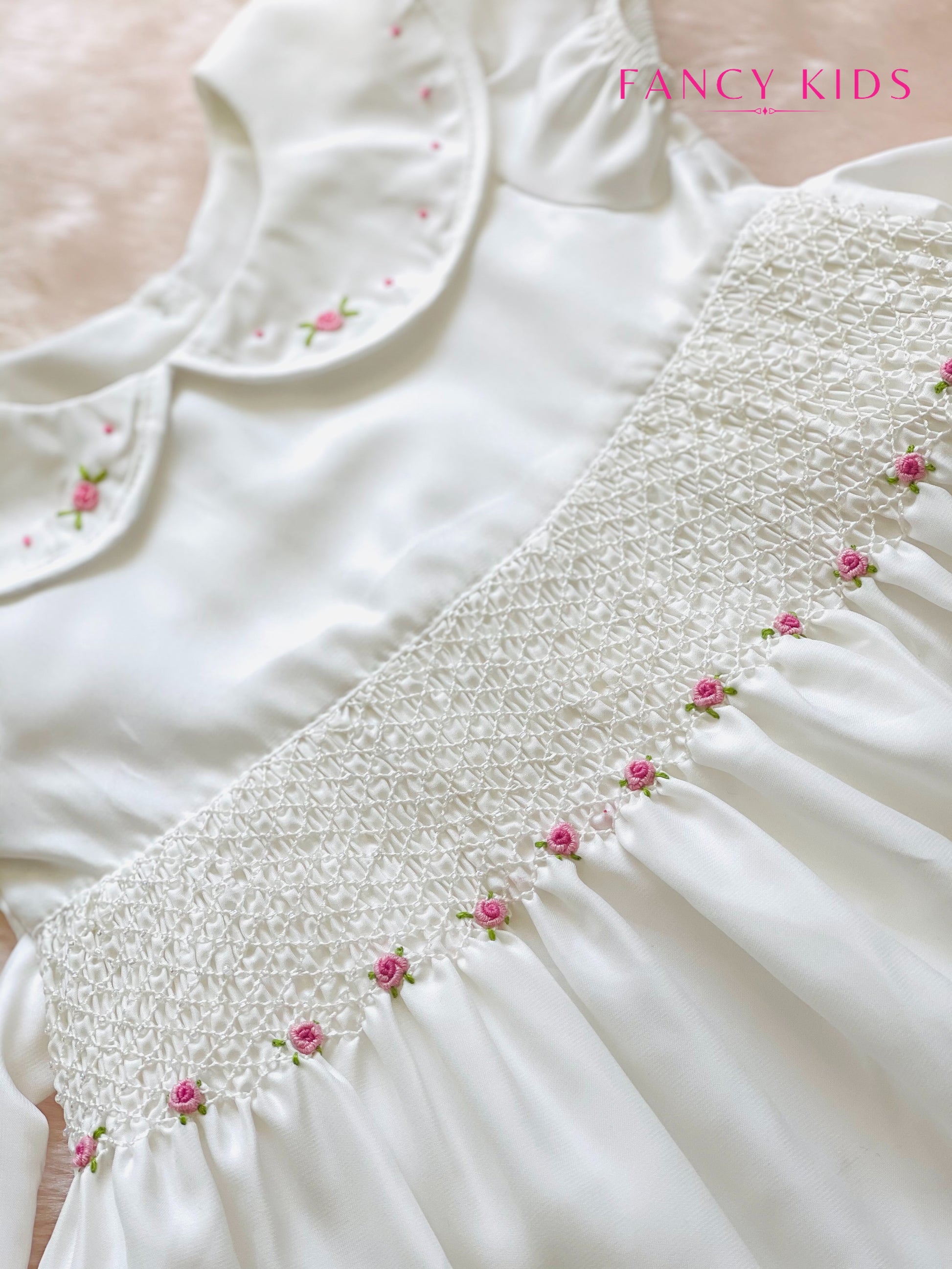 Hand smocked and hand embroidered dress with a gorgeous bead work on the bodice.
