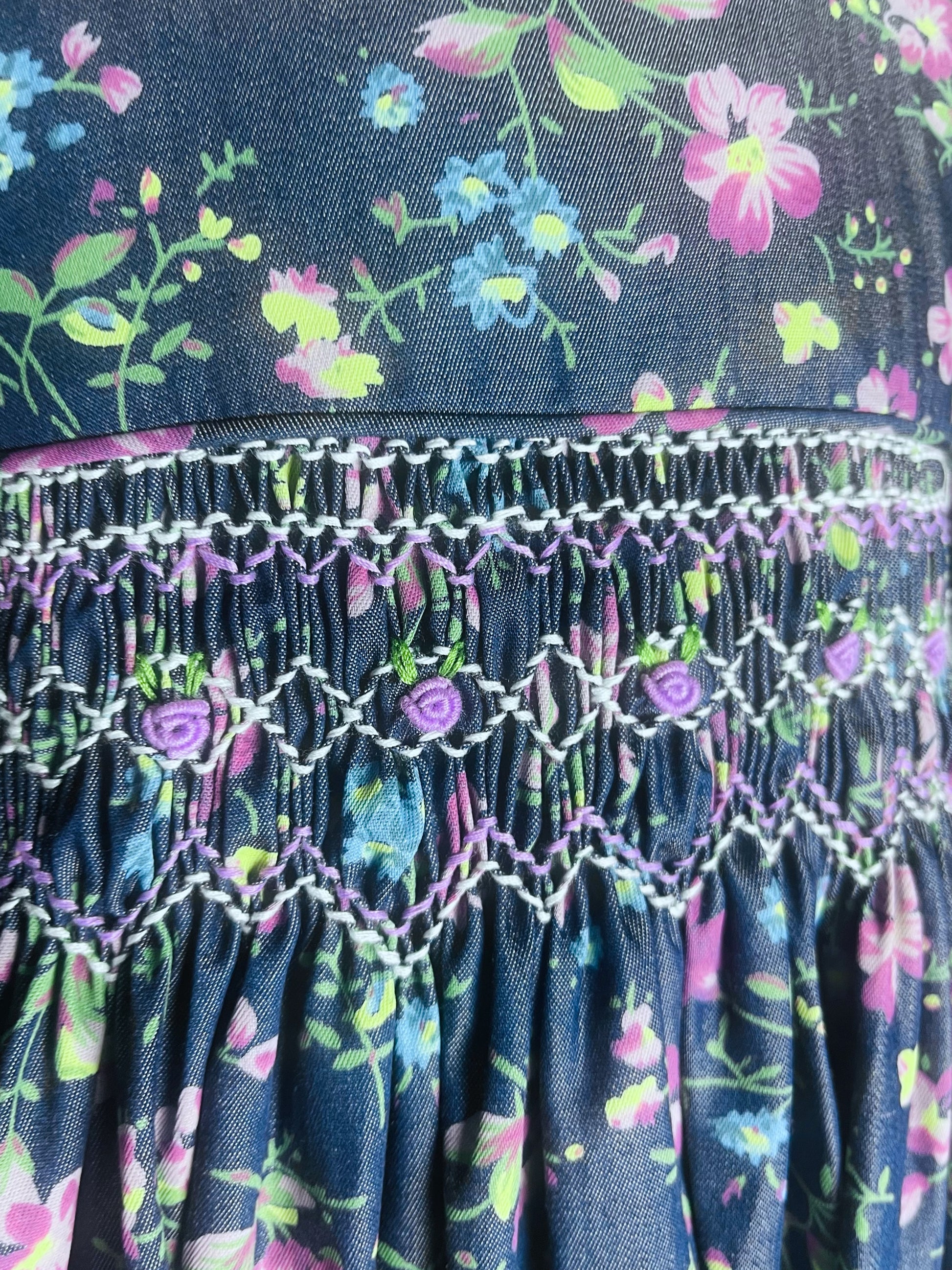 Hand smocked and hand embroidered long sleeve winter dress.