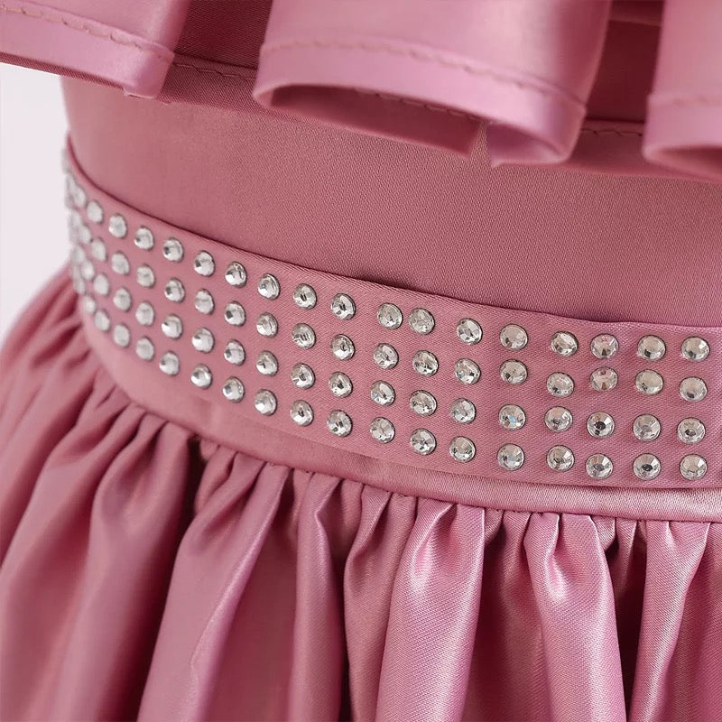 Off the shoulders long dress made of high quality bridal satin and fully lined with soft cotton with added layer of volume net attached to the inner lining.