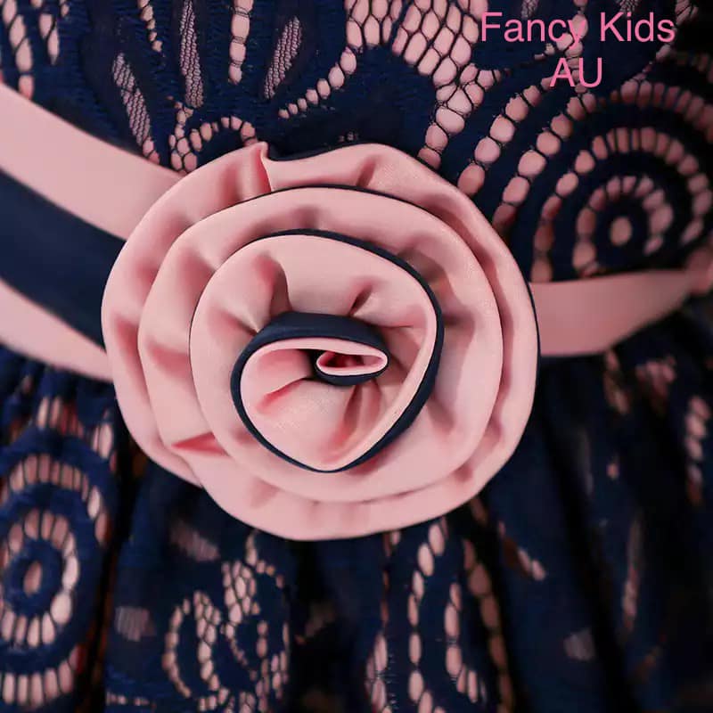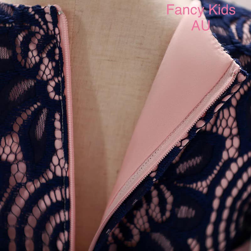 Crafted with navy blue lace fabric lined in pink satin fabric.