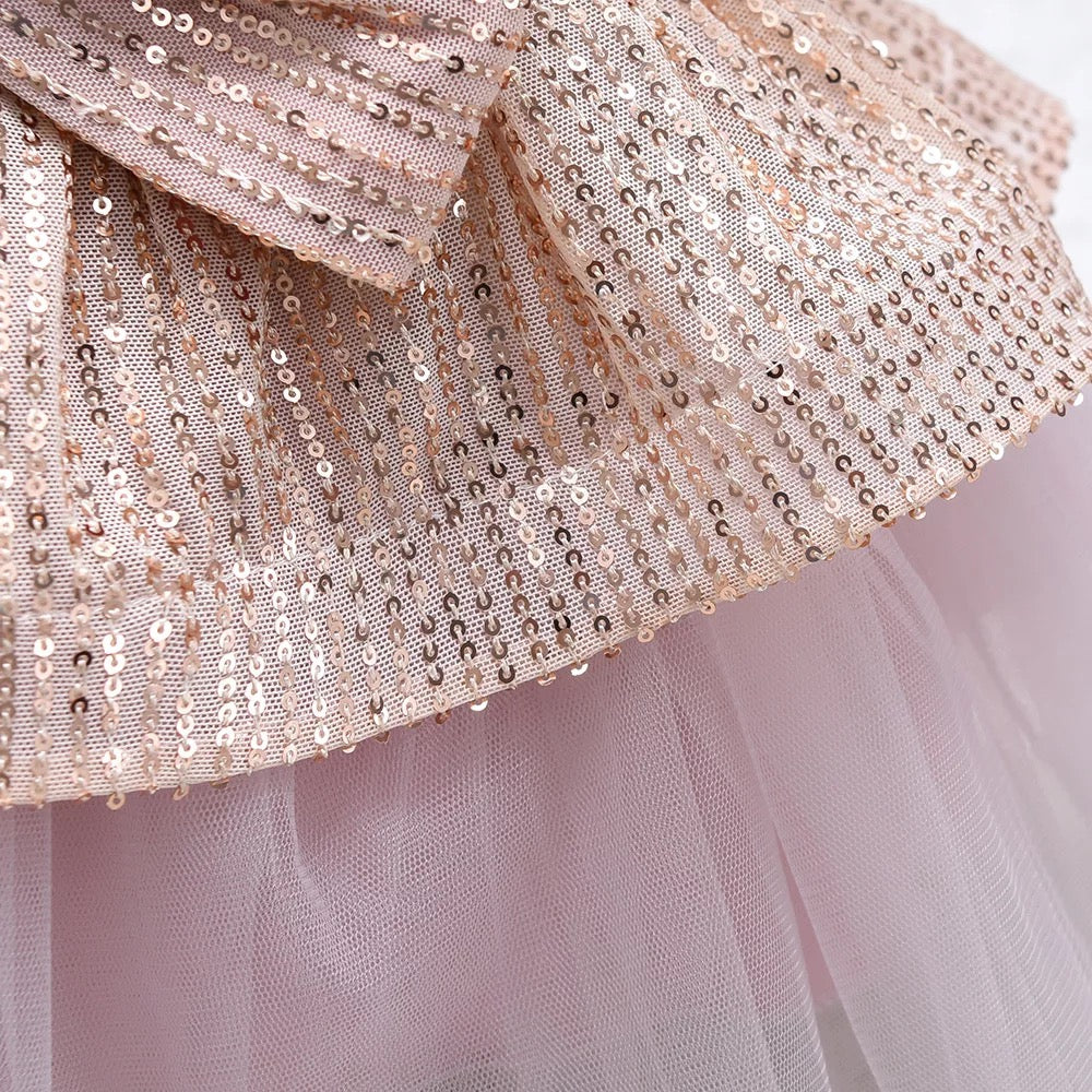 Elegant and luxurious party dress beautifully crafted with sequin fabric and soft tulle.