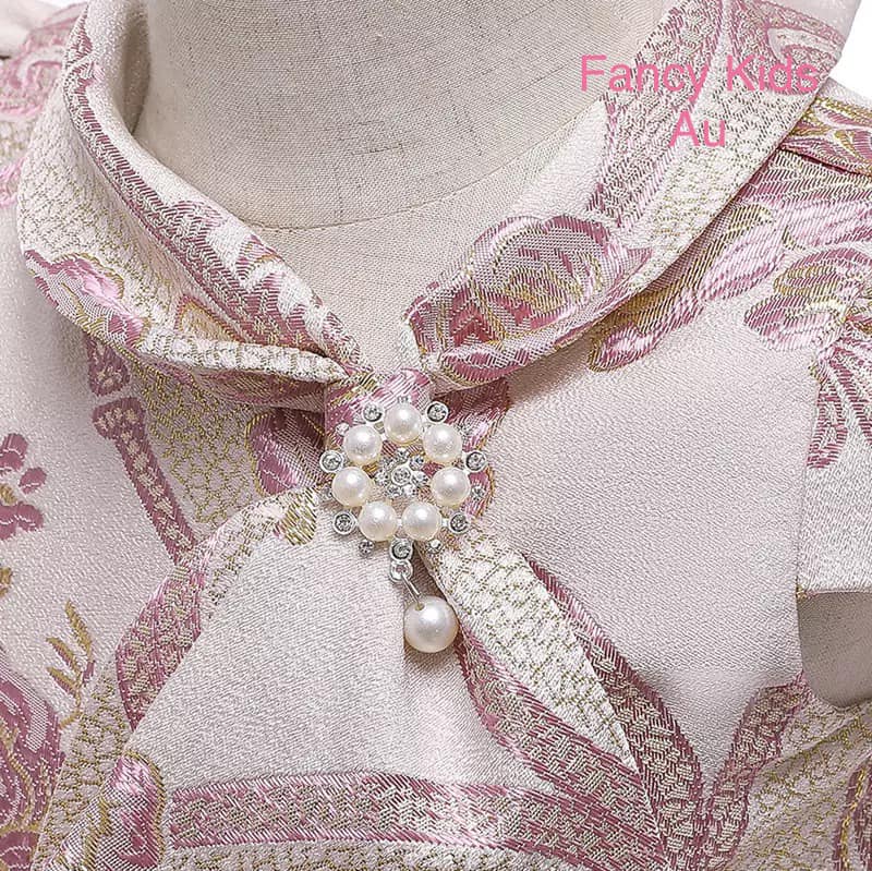 Neckline has a classic cut with a tie on the side embellished with a silver ornament.