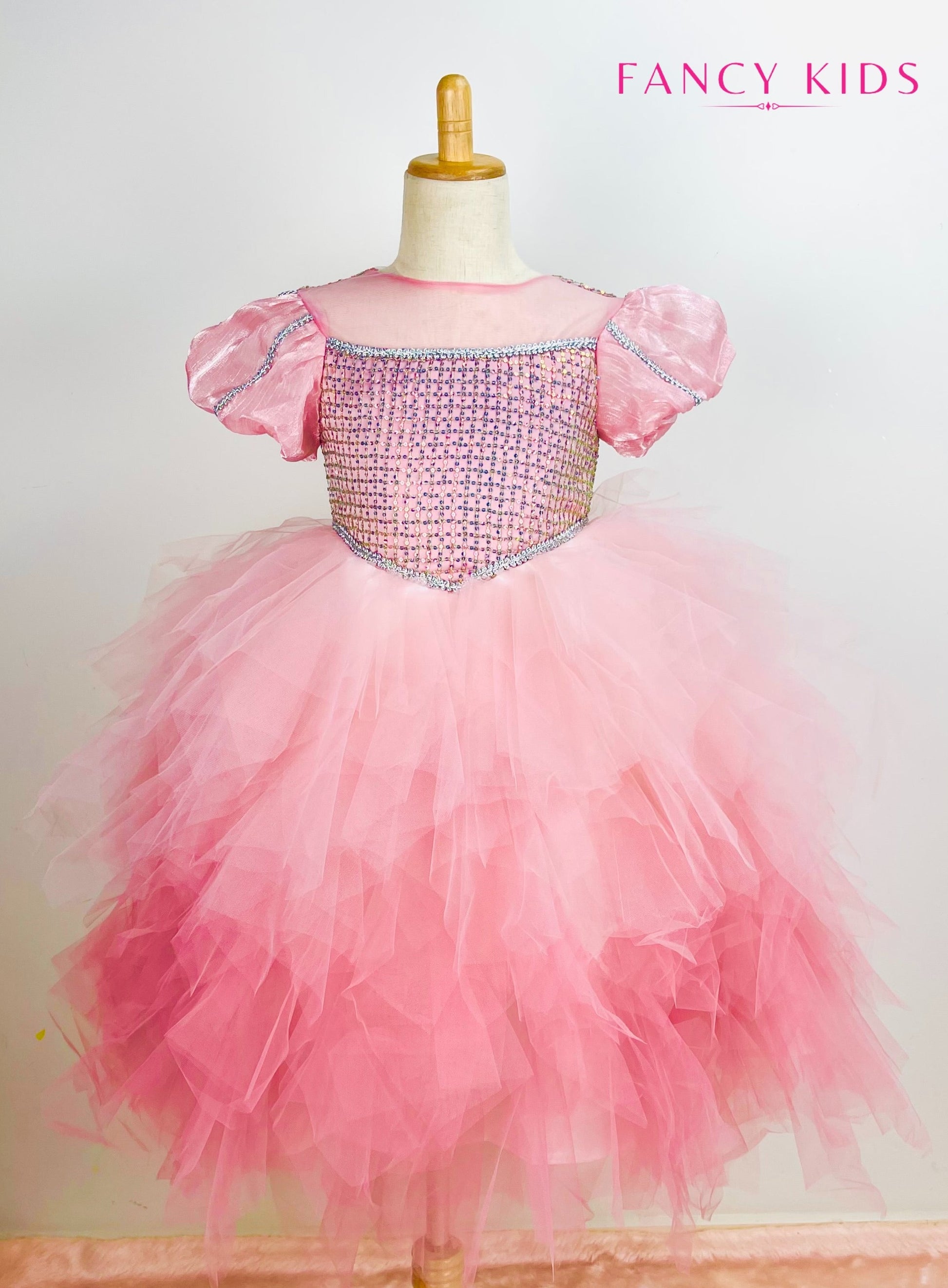Style her with this elegant and fairy tale dress featuring a dream skirt made out of tulle with shades of dust pink colour.