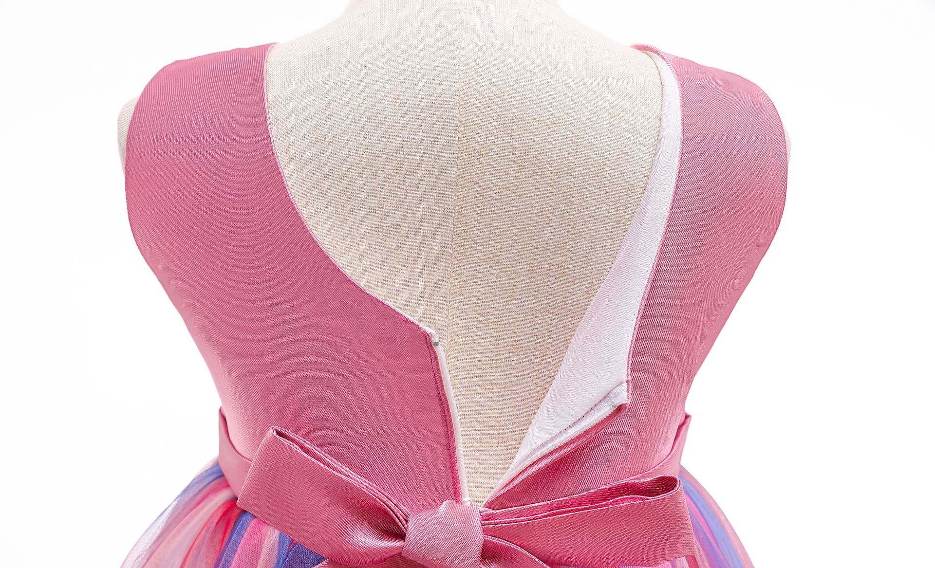gorgeous dress with tulle pom pom flowers on the skirt with a long tail.