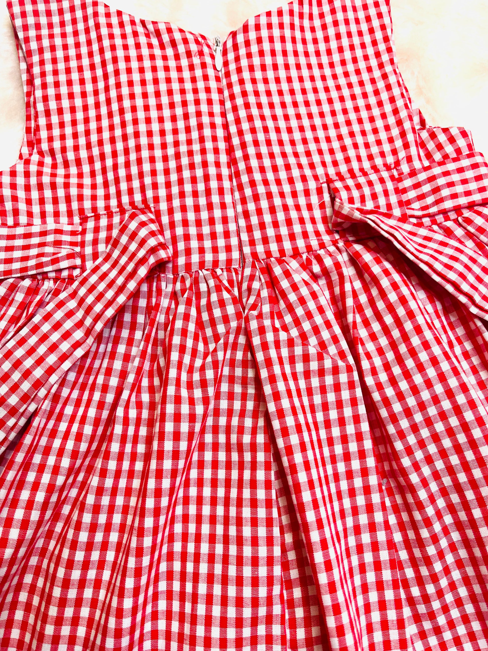 Red checked embroidered baby dress